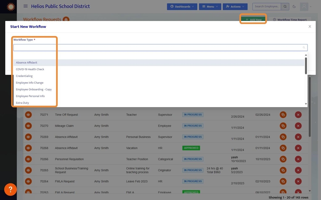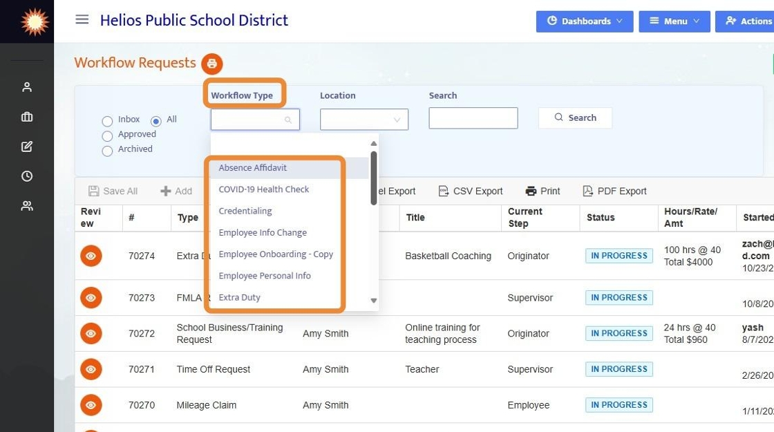 7. When clicking into Workflow Type from the Workflow Dashboard, all Workflow Types for a given user will be visible to that user.