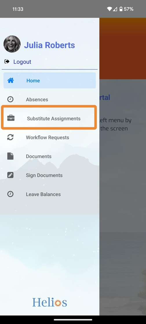 2. After logging in, expand the menu from the top left of the screen and click on Substitute Assignments menu