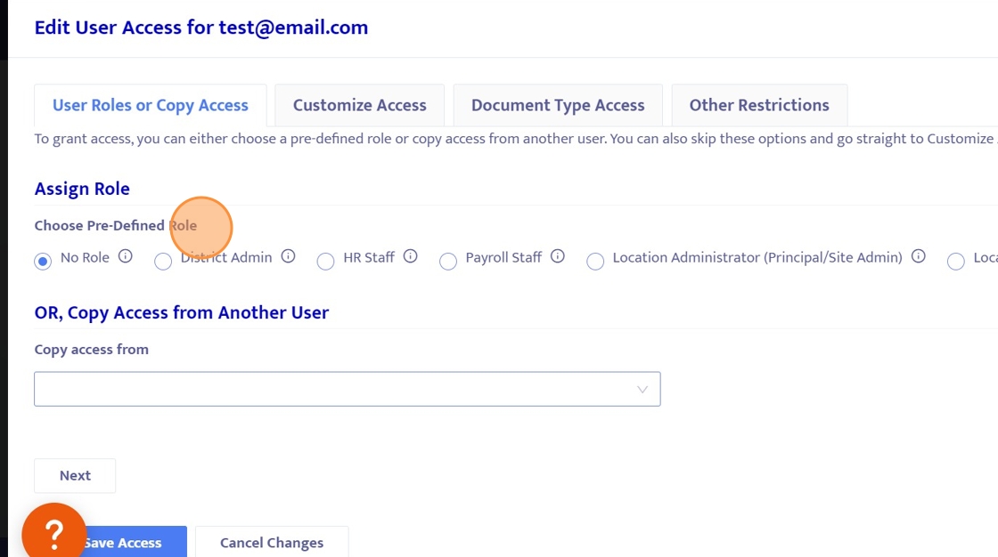 District Admin - This role grants all levels of permissions to the user. This permission includes the capability to administer the system, change settings, and add new users/change existing user access