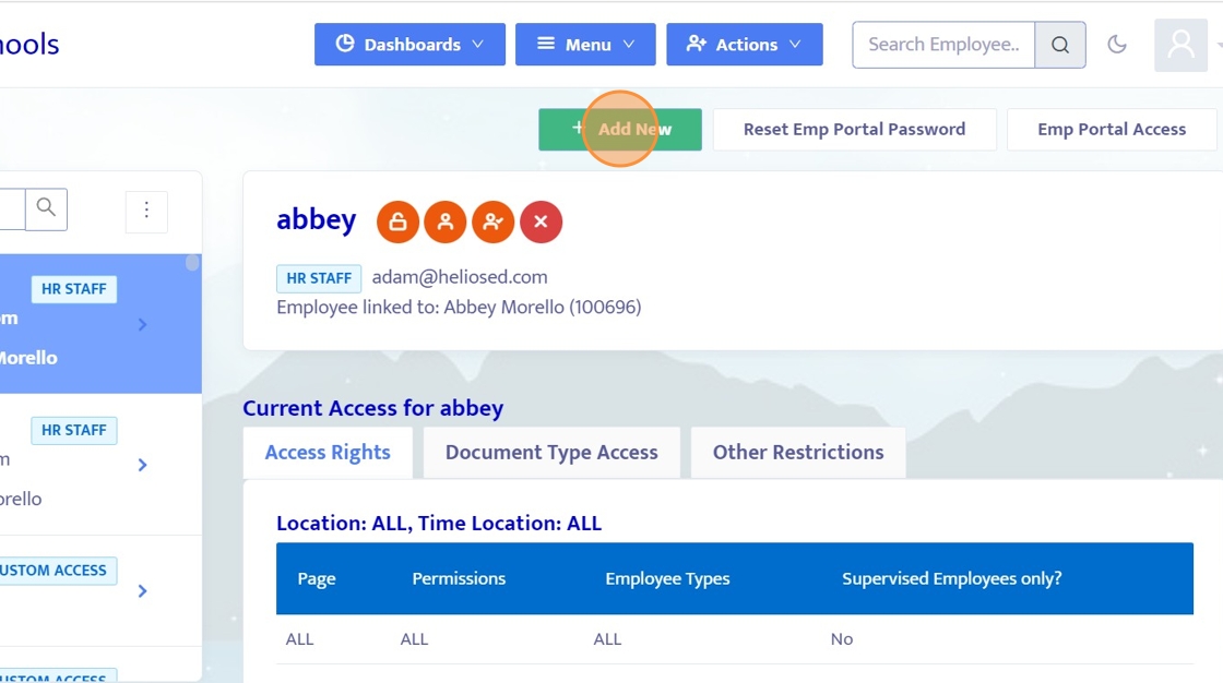 Welcome to the introduction on adding a new user to User Access in Helios! Before we get started let's make sure we are discussing the correct type of user. Helios has 2 types of users: HR Portal Users - This is a user like yourself! This is a staff member with some sort of administrative function that needs to be able to access employee data, records, evaluations, etc. Employee Portal Users - This is a regular staff member such as a teacher or custodian who only needs access to their person