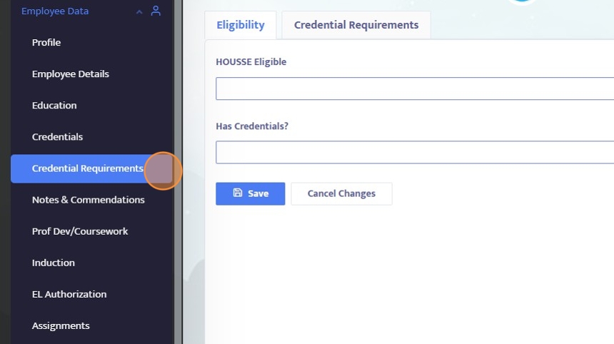 4. To view employee credentials or manually update their credential records, click on "Credentials" in the Employee Data menu on the left.