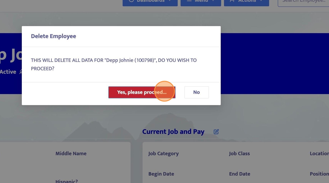 5. Confirm this deletion, then the employee will no longer be in the system.