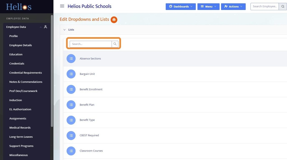 Dropdown Edits - How to make changes to the different dropdown sections throughout Helios