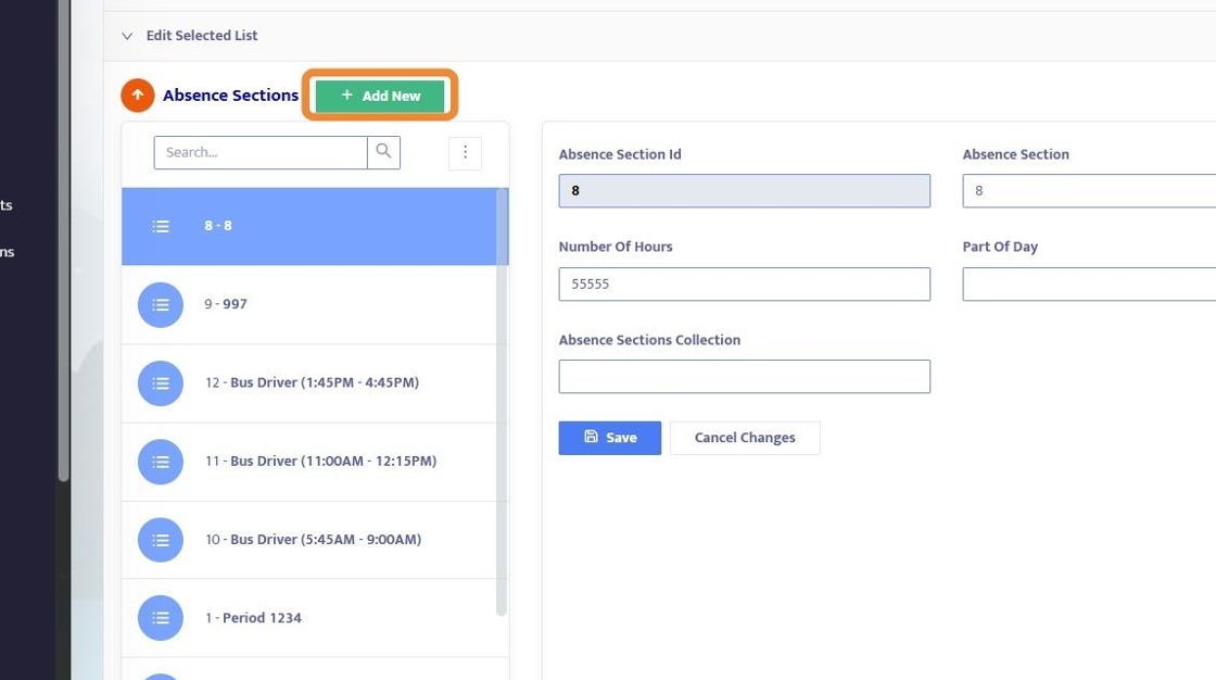 Absence Sections, for instance, is the Period sections in Absences and Substitutes where particular periods can be selected in an absence - these periods can be named and additional information can be added.