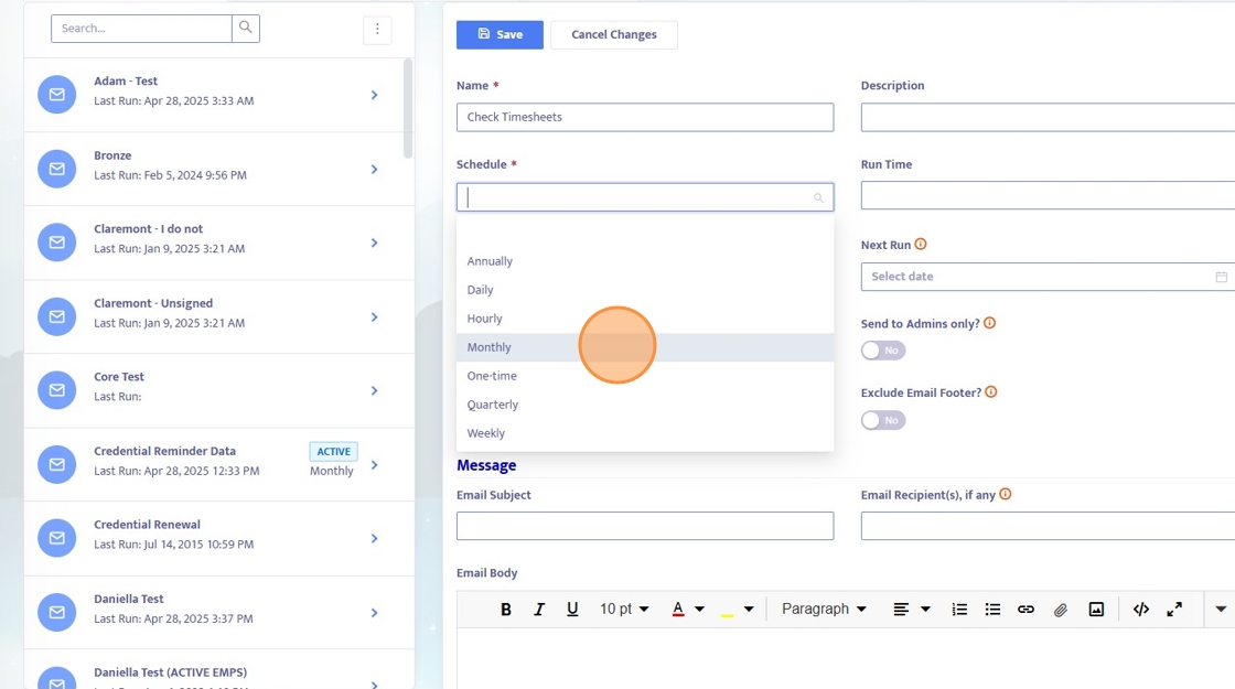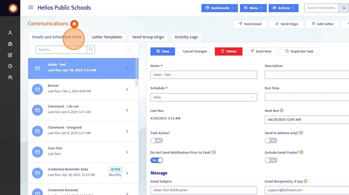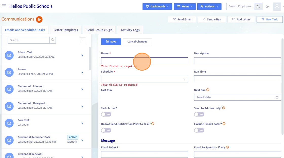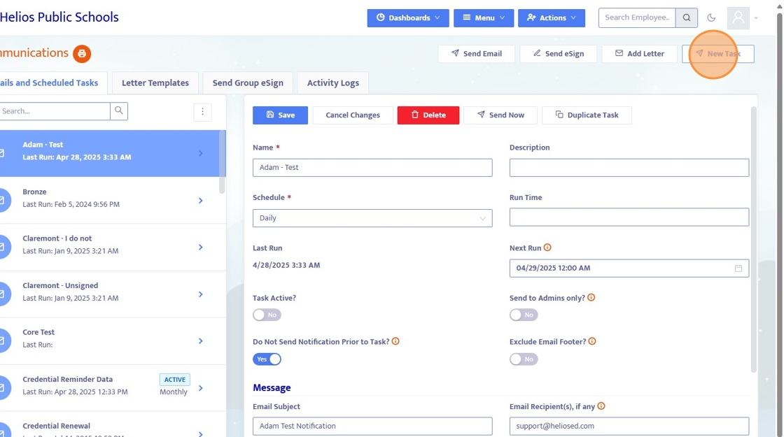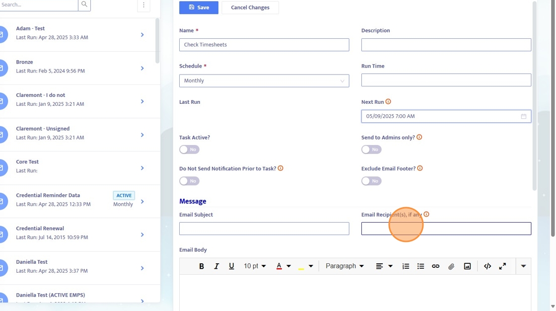 11. When complete, be sure to save all progress and this scheduled task will be saved to the list of the left.