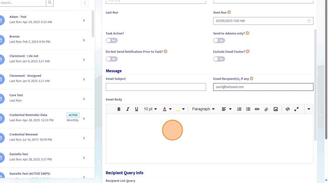 9. In the Email Body field, craft the email with any information that you'd like to be included.