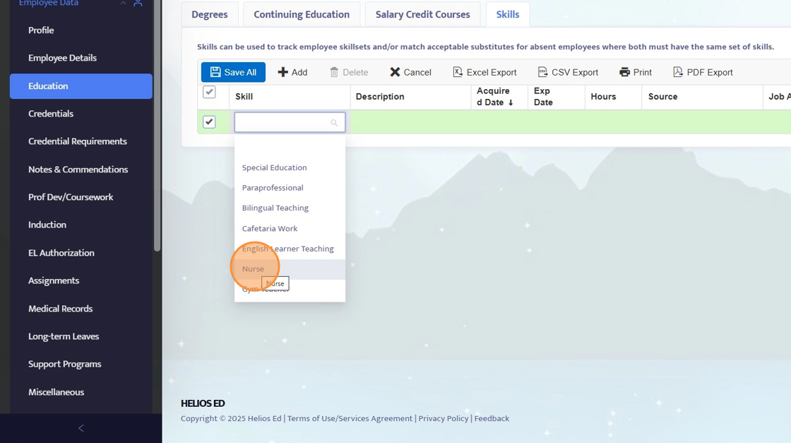 5. You can modify existing skills, be sure to hit "Save" when done.