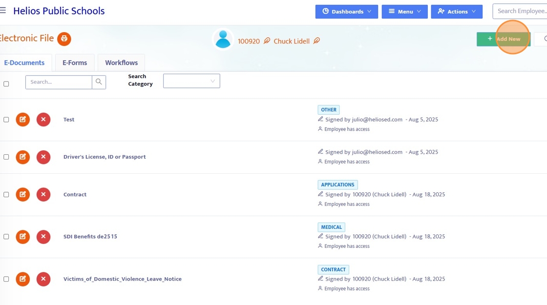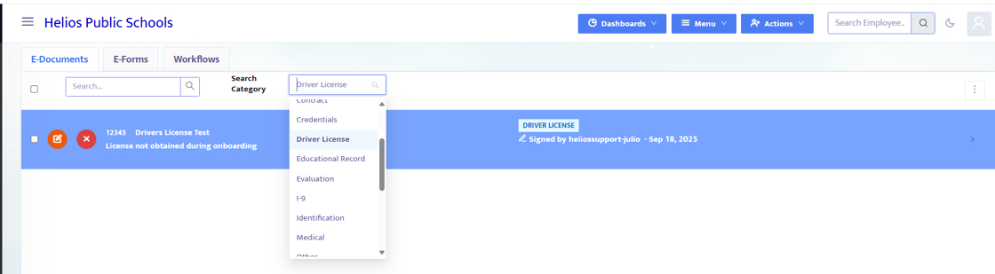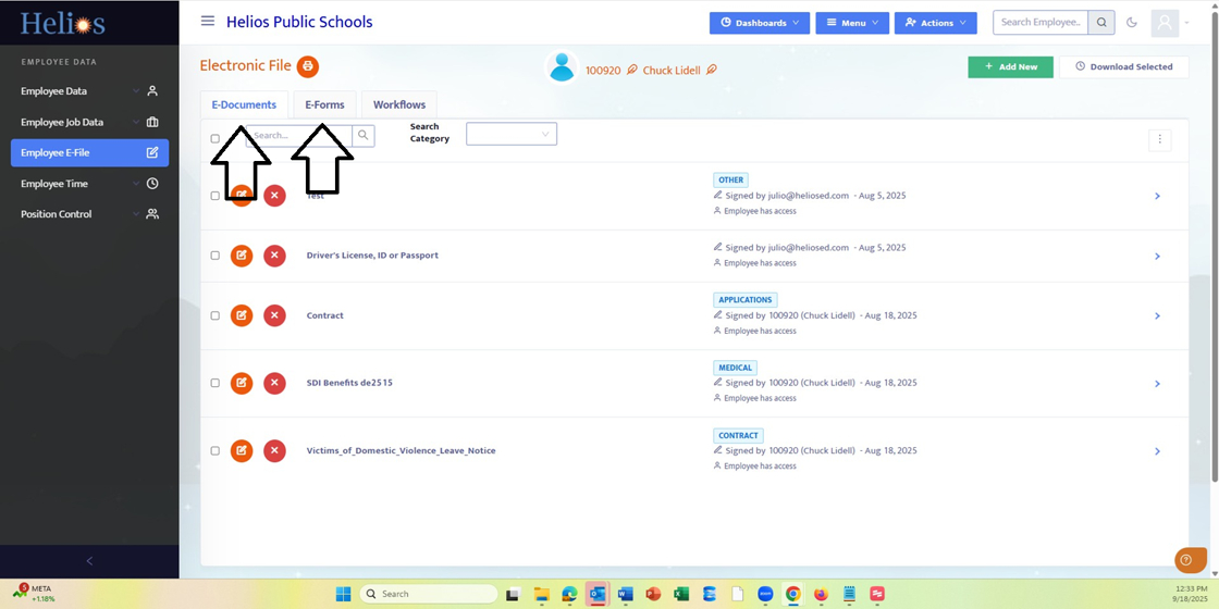 6. Click on "E-Documents" or "E-Forms" to choose which type and location the form will be loaded.
