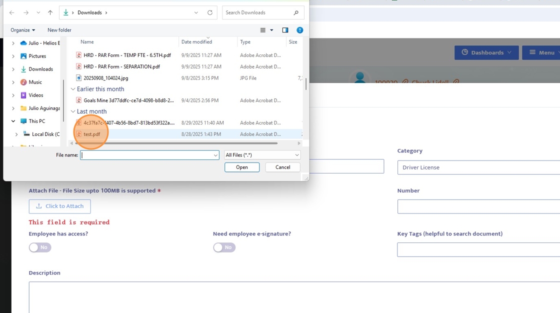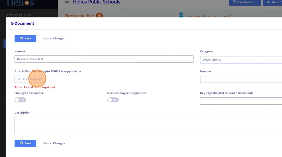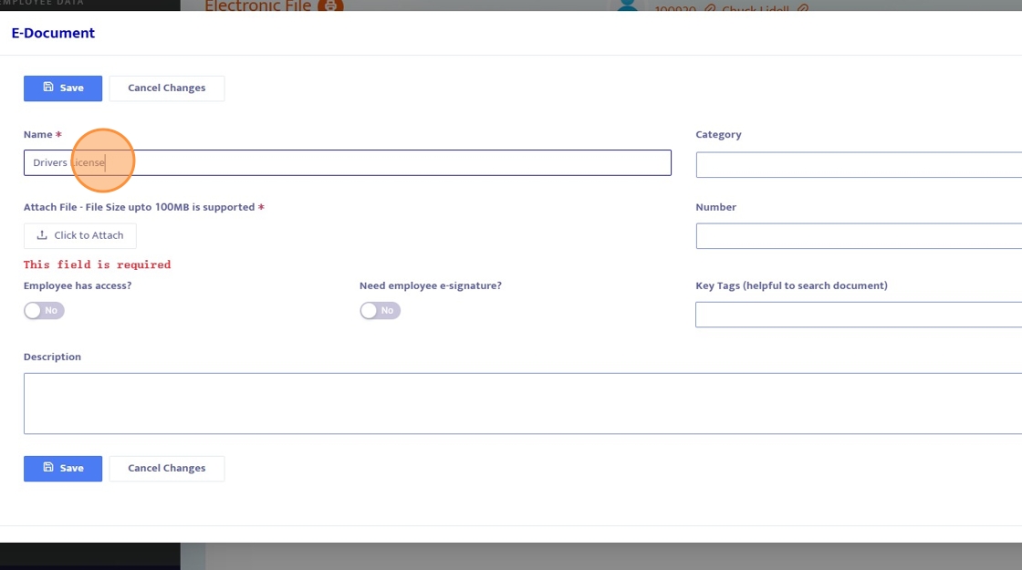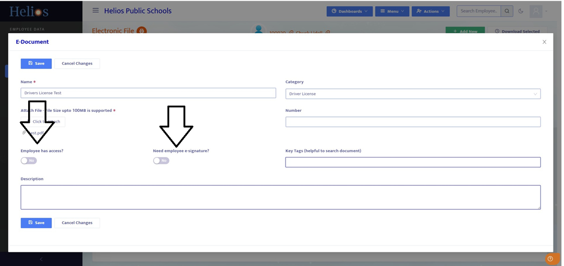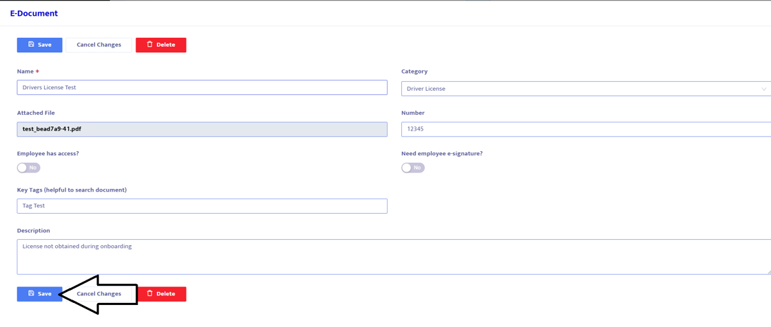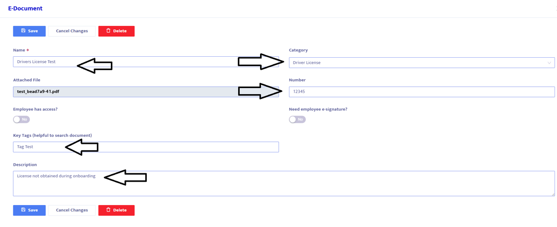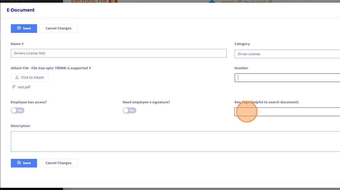 12. Fill in optional fields (Number, Key Tags, and Description). The optional fields are useful to search for the documents. The more specific the description the easier it will be to locate them (especially if there are a lot of forms)