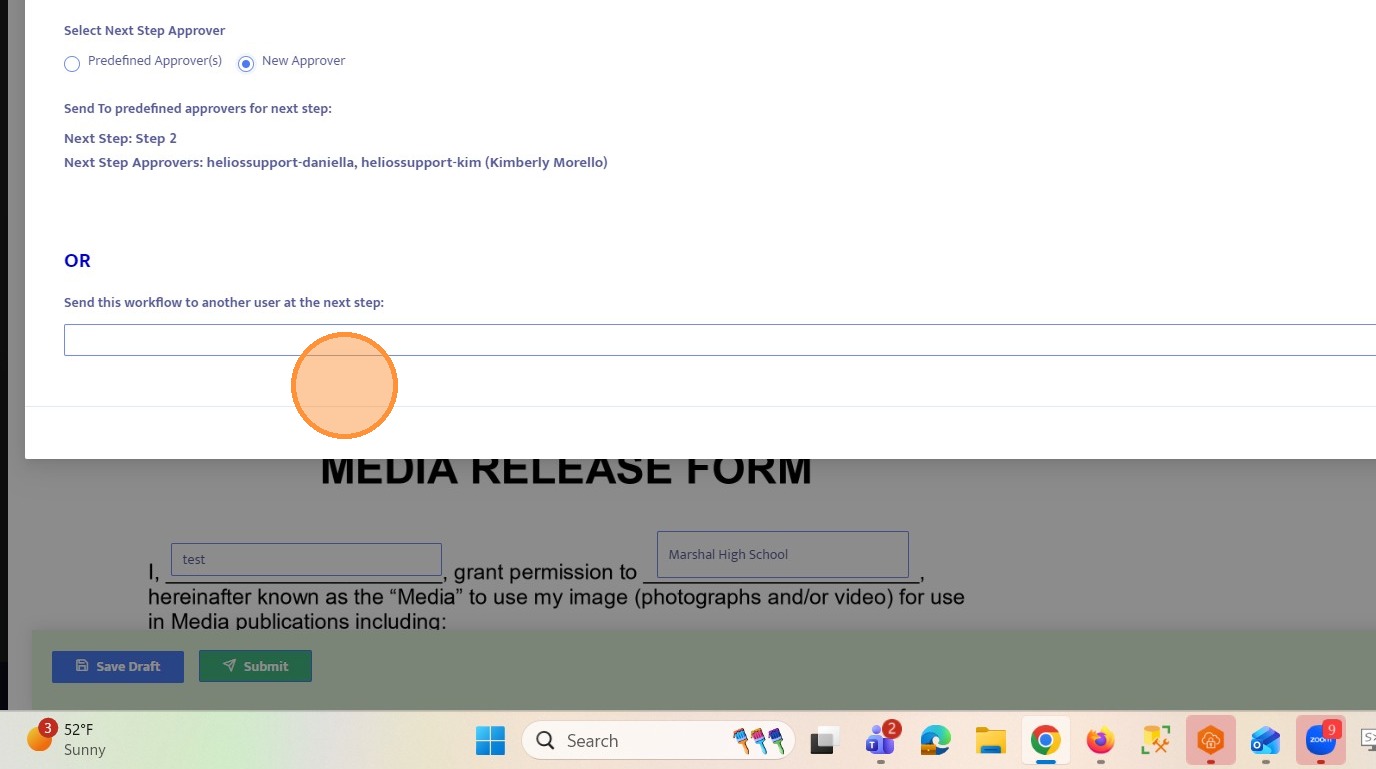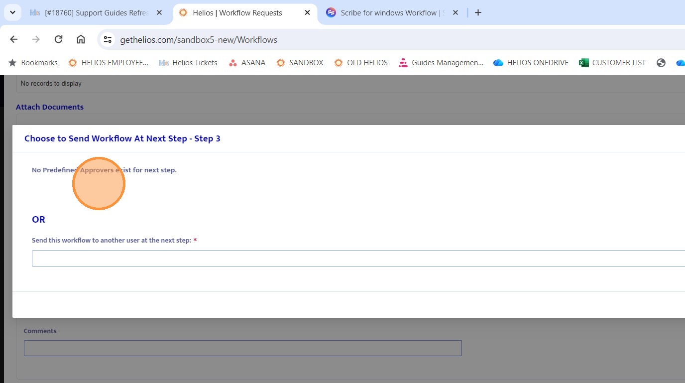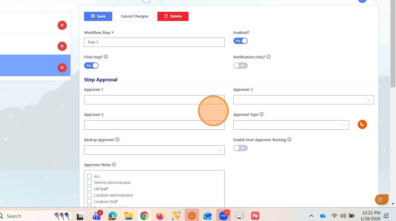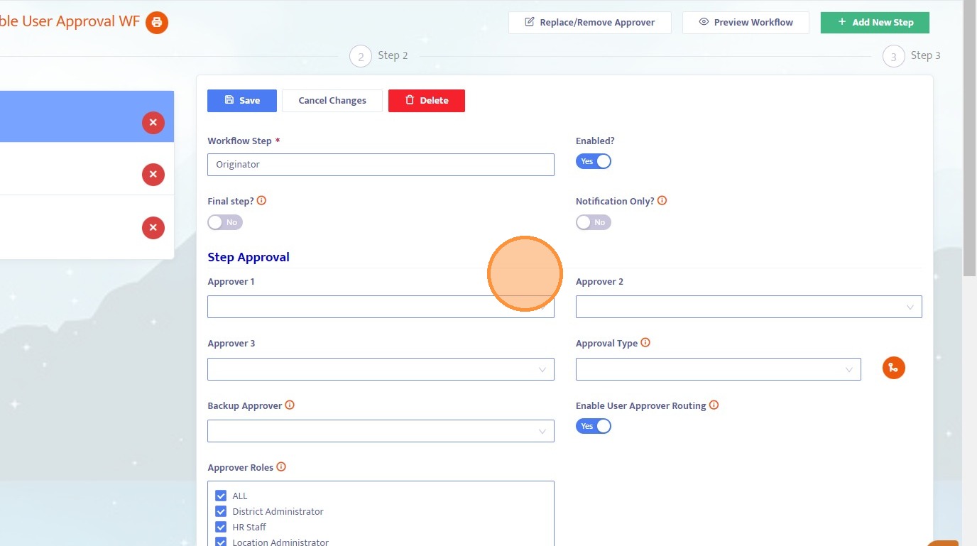25. Since Step 3 does not have predefined approvers, you must select a user from the dropdown to route the workflow.