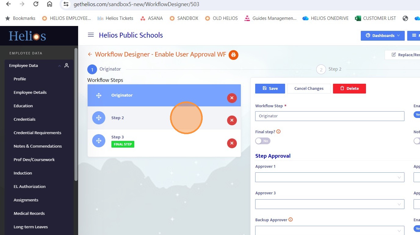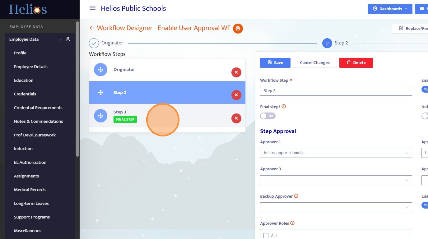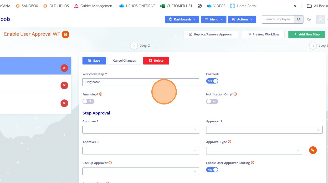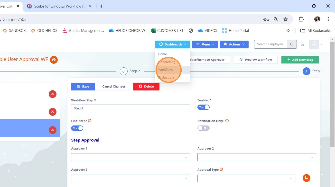 25. Since Step 3 does not have predefined approvers, you must select a user from the dropdown to route the workflow.