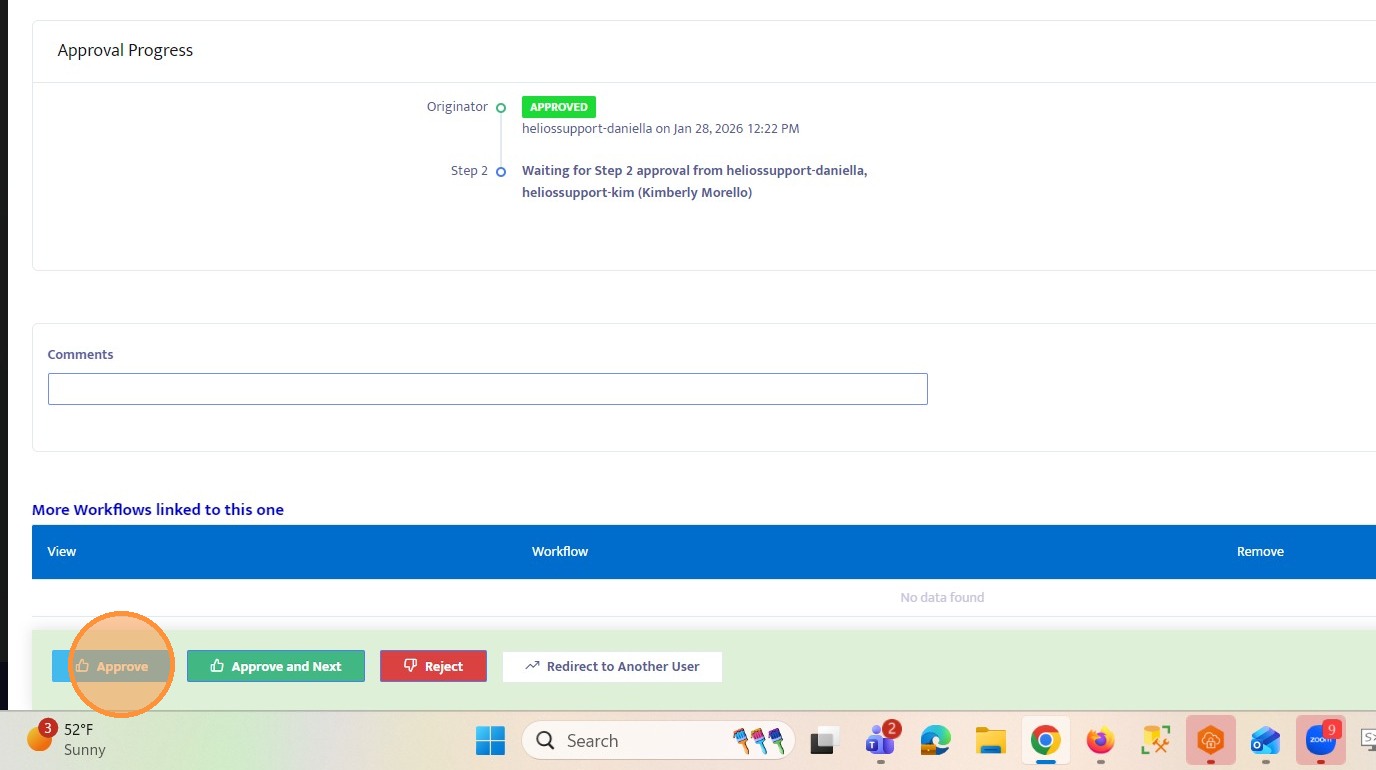 24. Approve the workflow to move it to the next step.