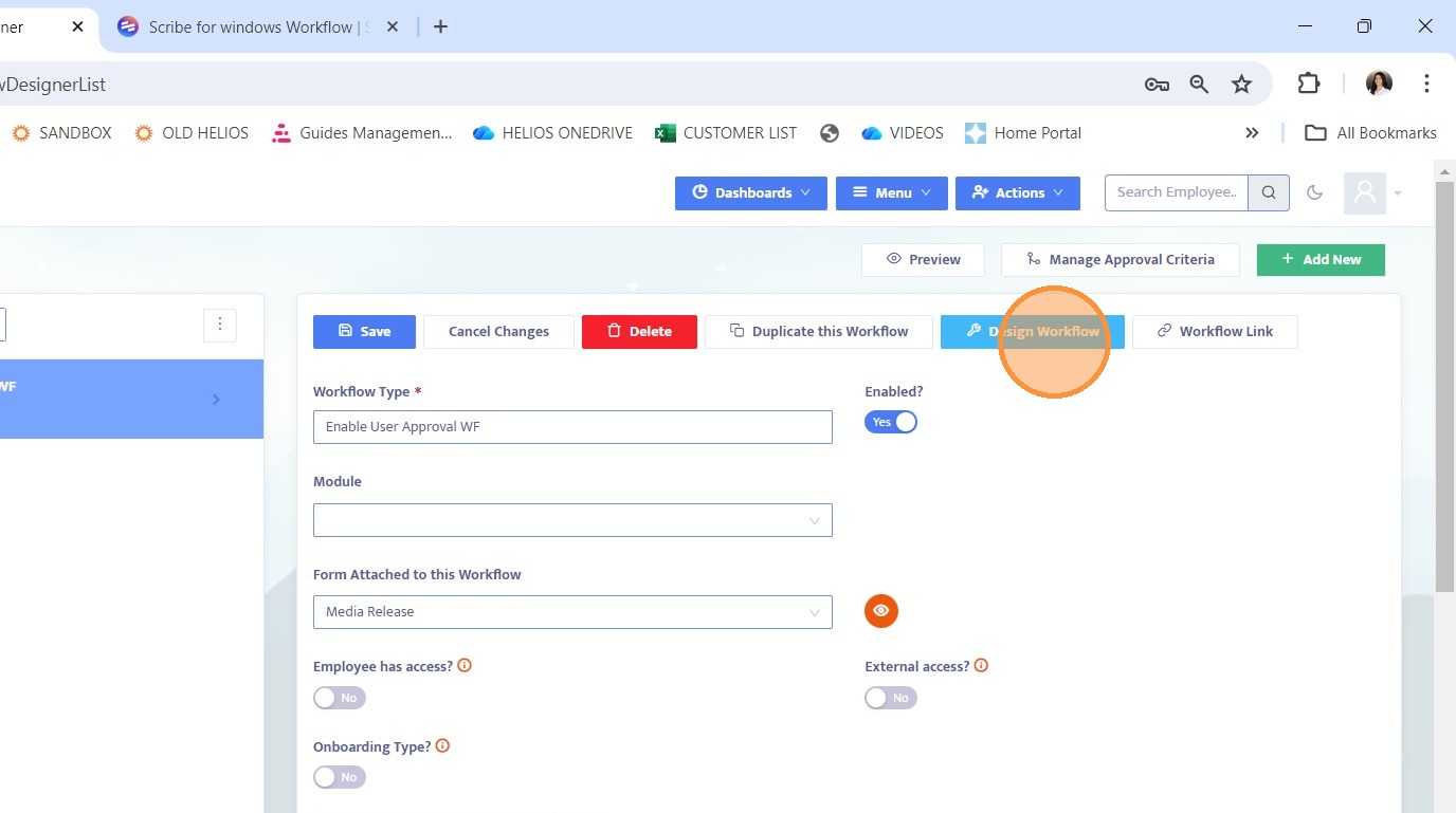 4. Click Design Workflow to enter the Workflow Designer for that workflow.
