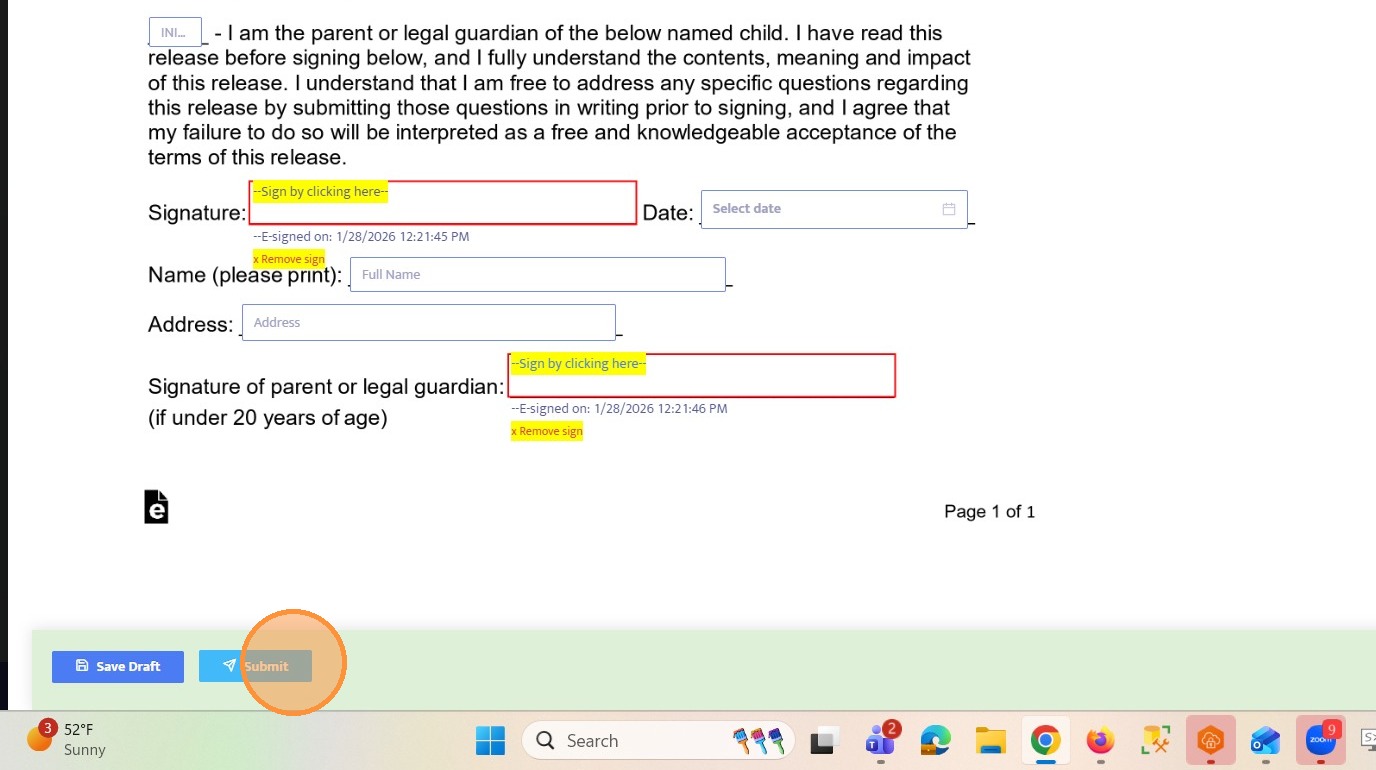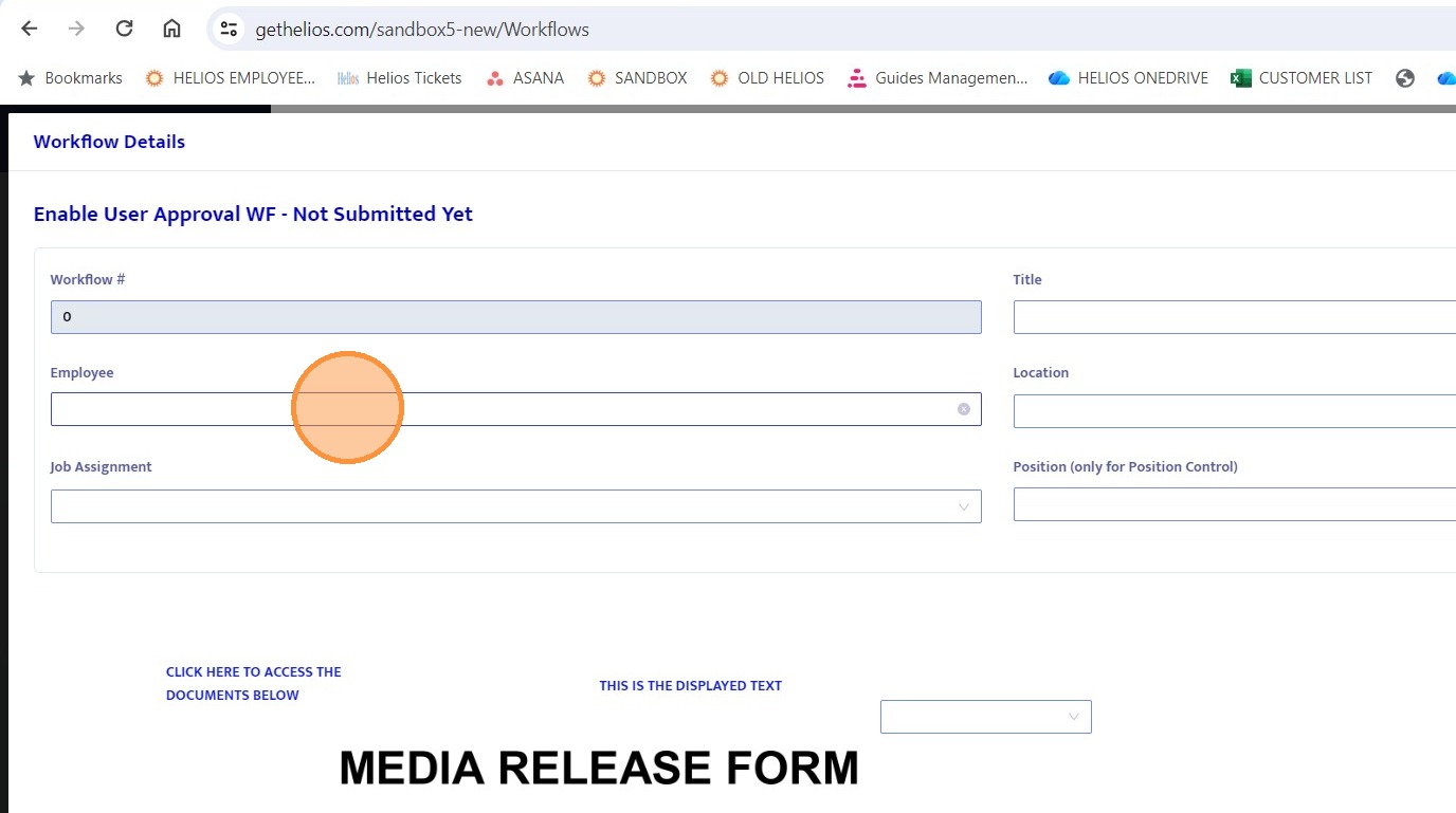 17. Complete all required fields on the workflow form.