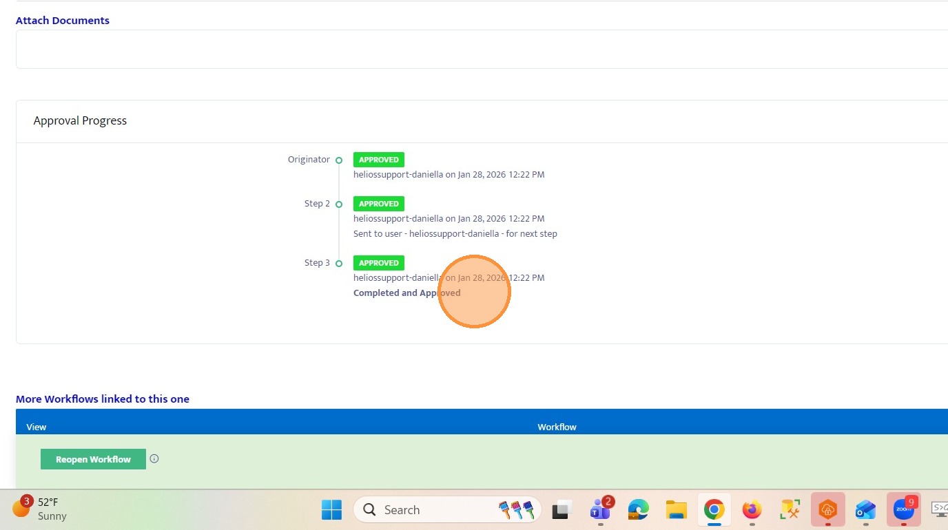 30. If the selected user approves the workflow, it will be completed and marked as approved.