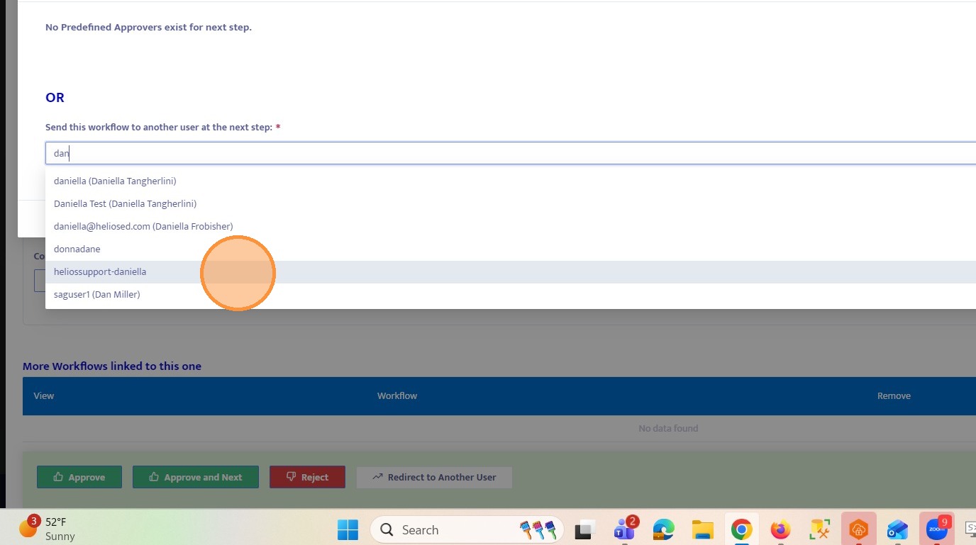 26. Select a user from the dropdown list. The workflow will be routed to the selected user.