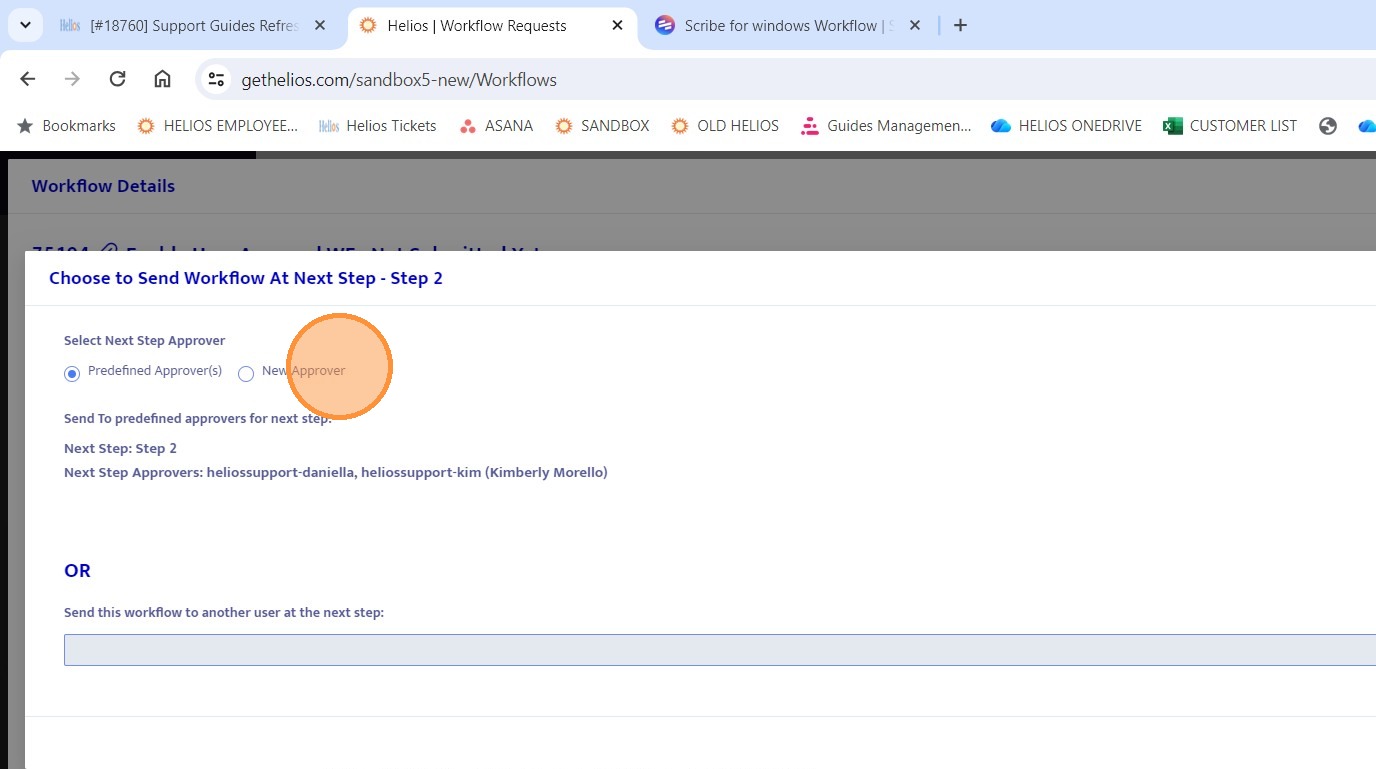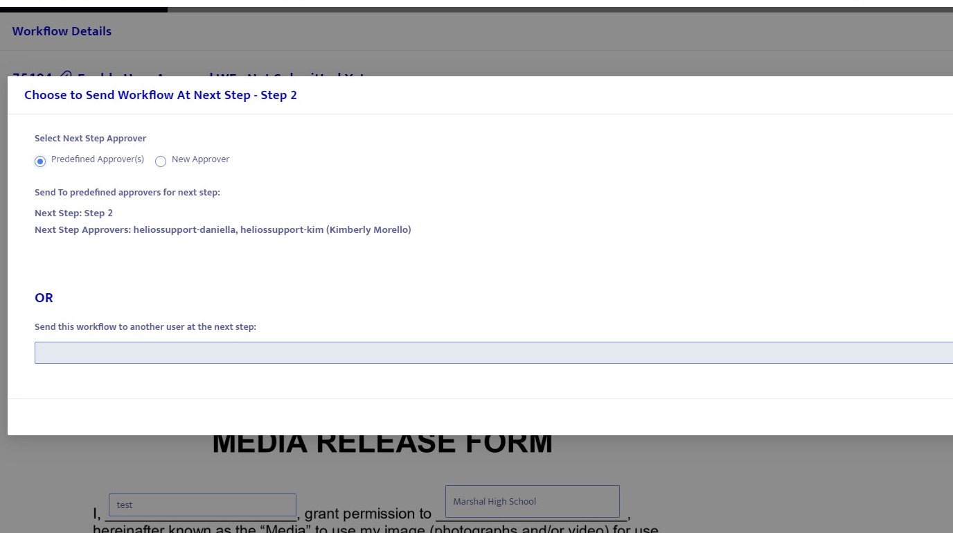 20. This "New Approver" option allows you to route the workflow to a different user not listed in the predefined approvers.
