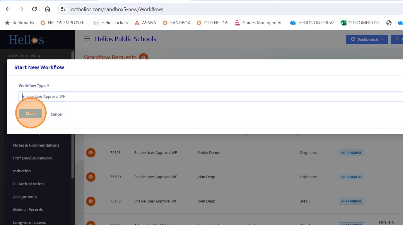 15. Locate and initiate the workflow you just configured.