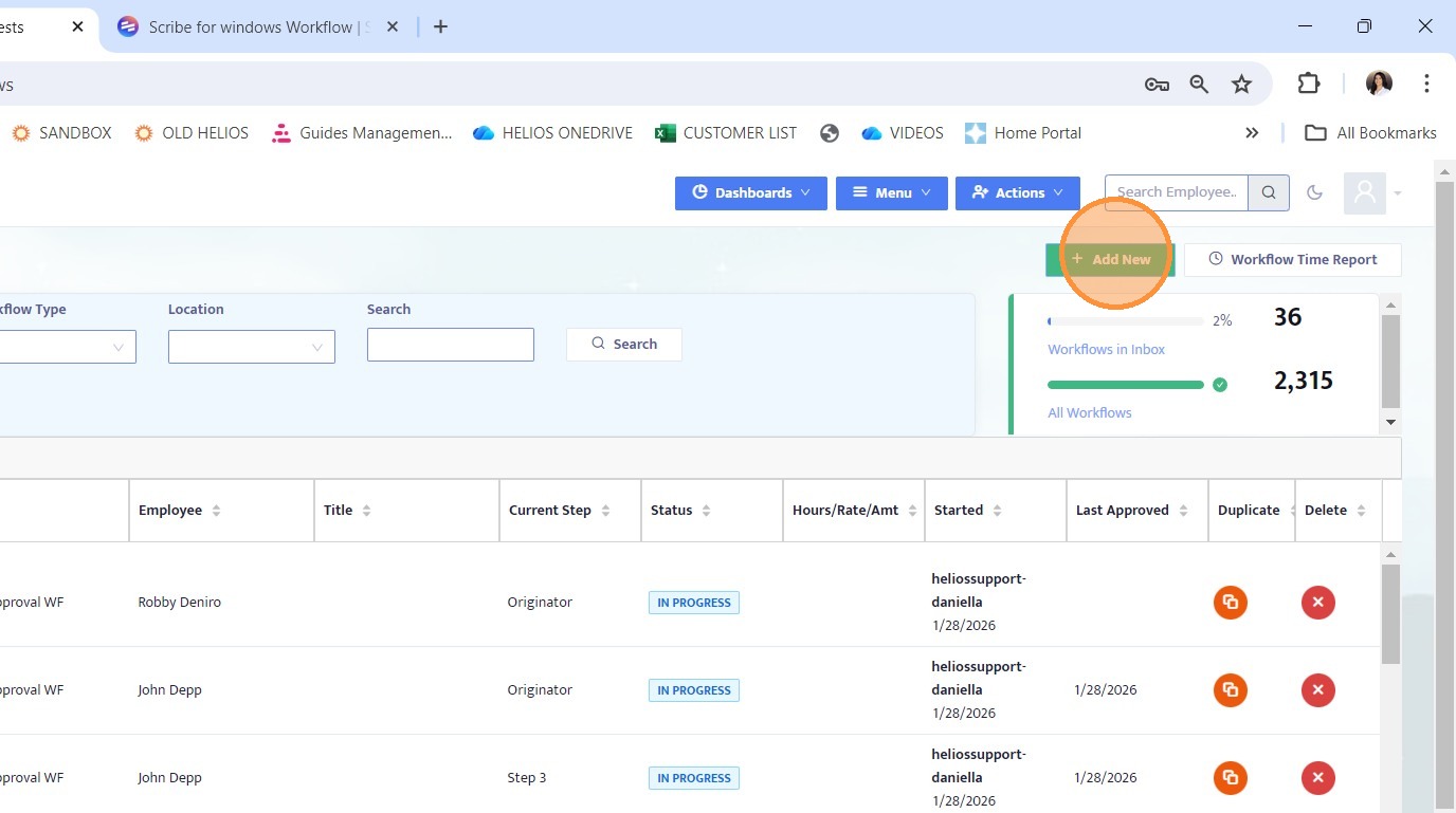 14. Return to the Workflows Dashboard.