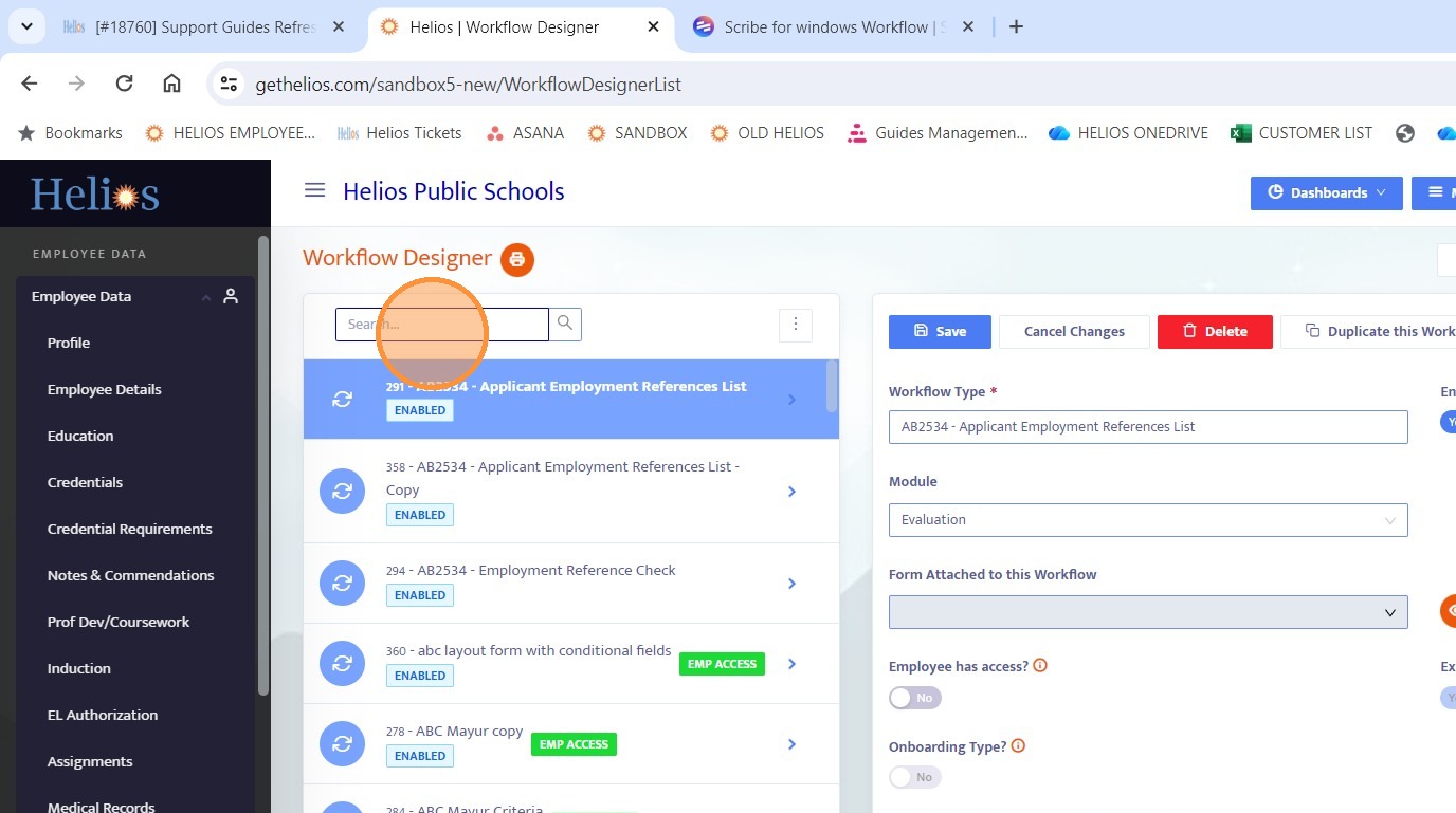 3. Use the search bar to locate the workflow you want to configure for user approver routing.