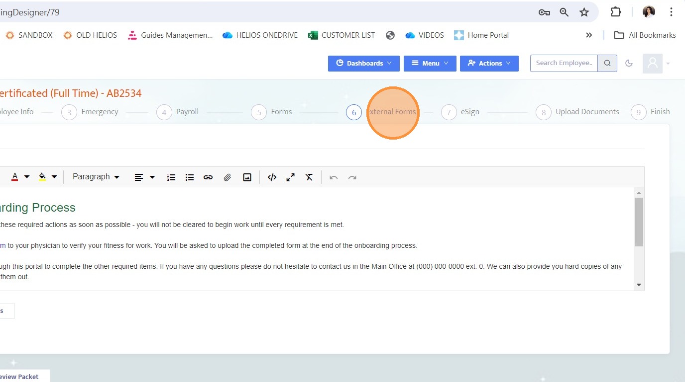 4. Go to the External Forms tab within the Onboarding Designer.