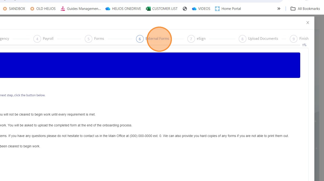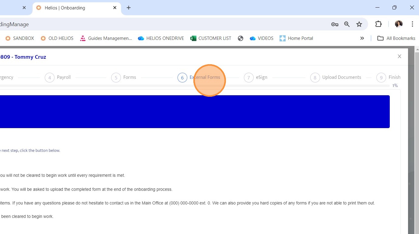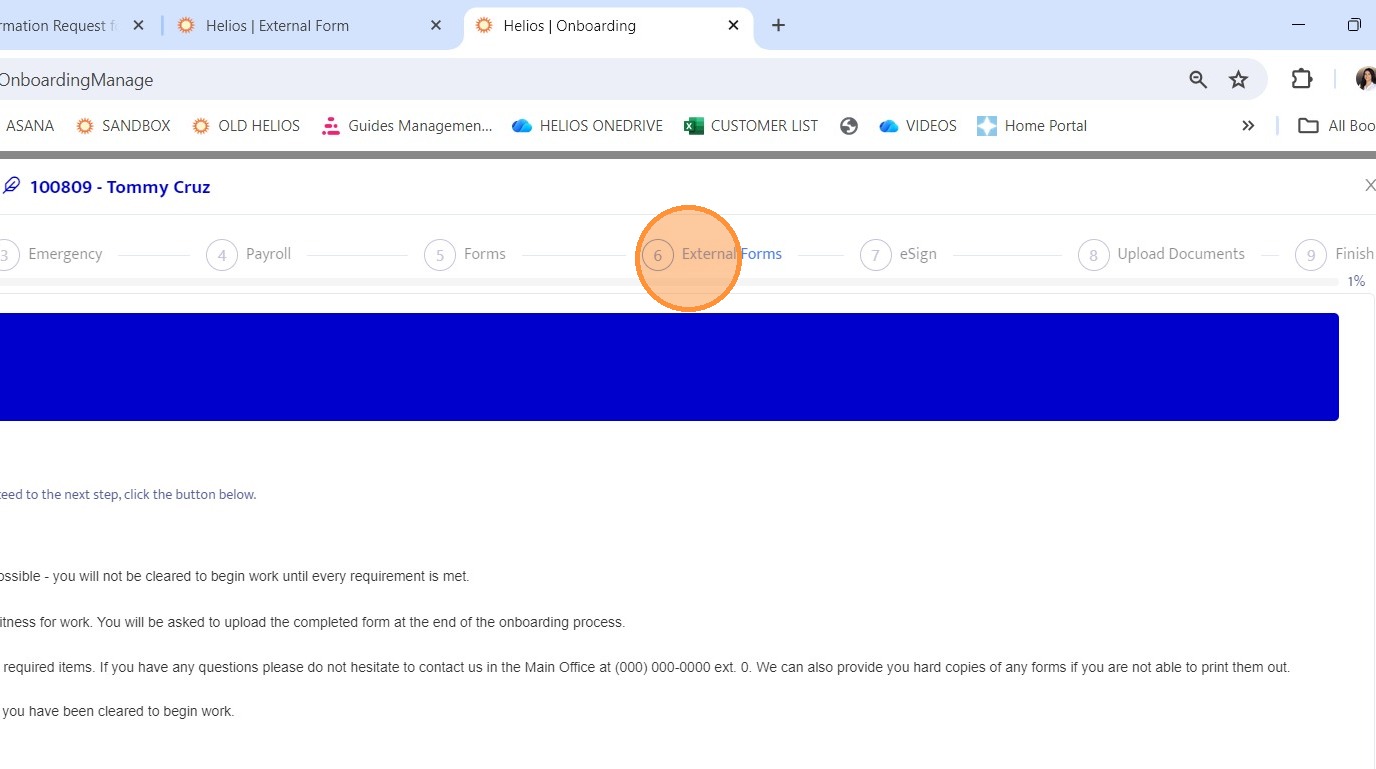 24. Navigate back to the External Forms section within the onboarding record.