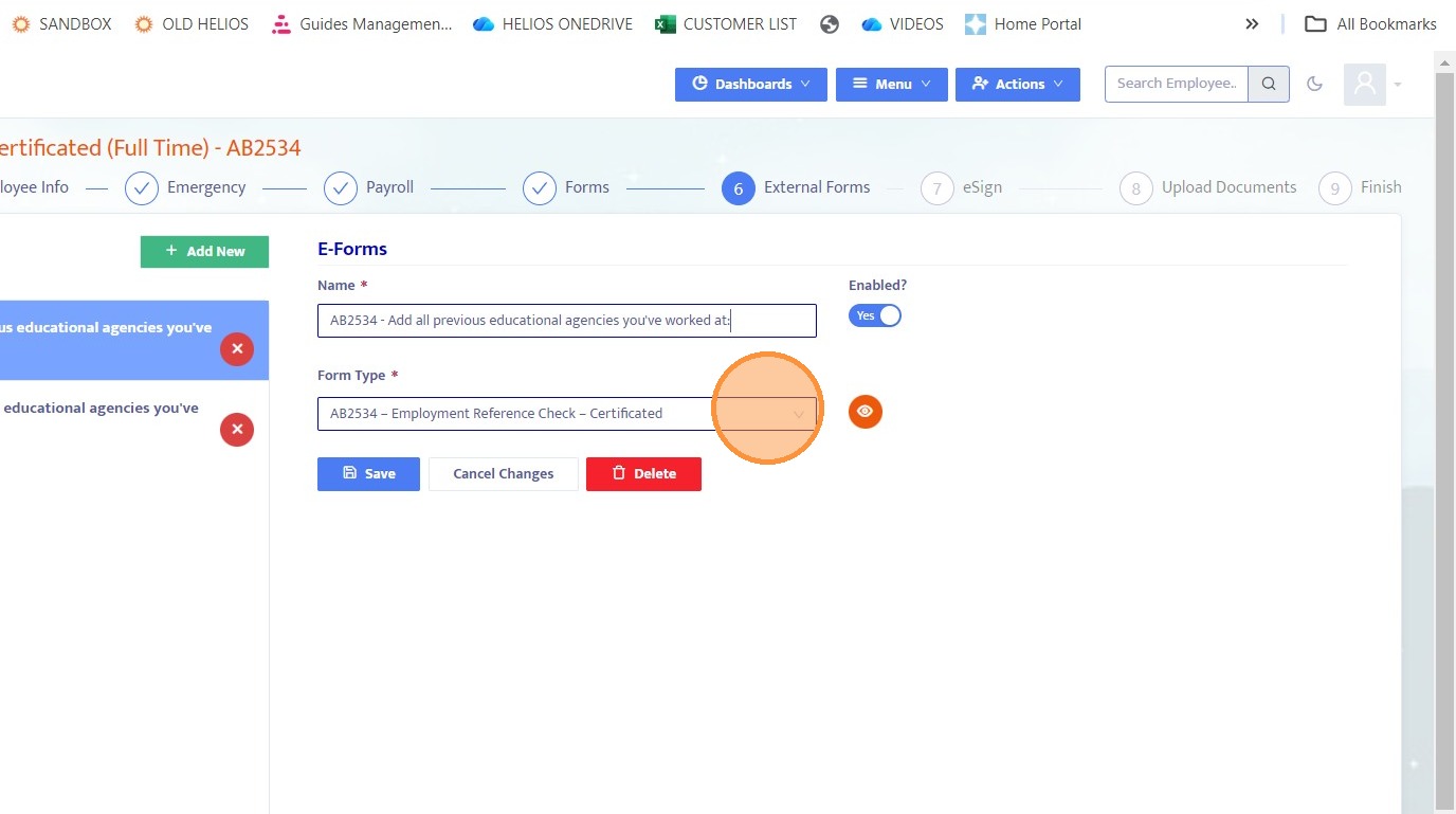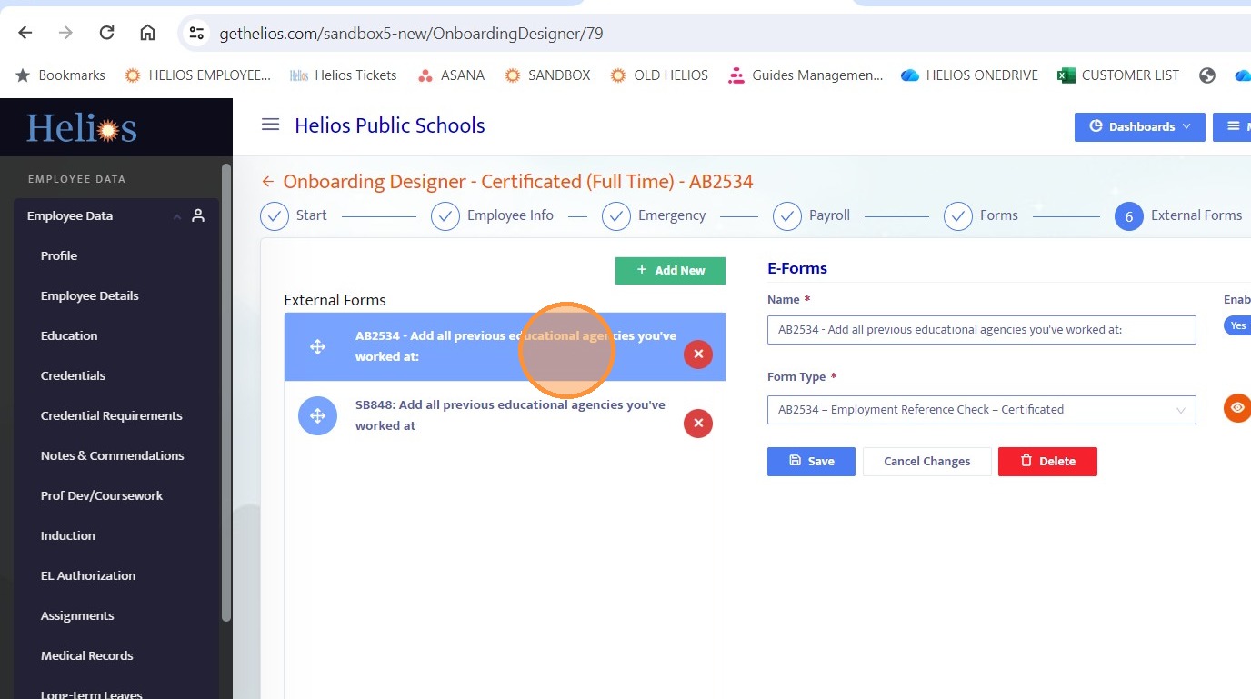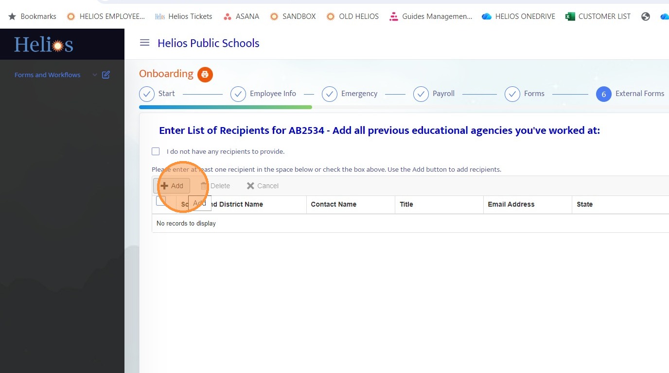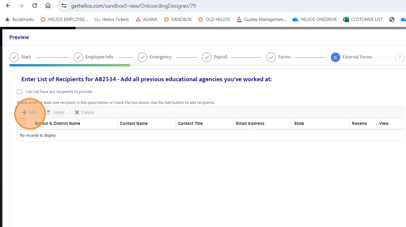 24. Navigate back to the External Forms section within the onboarding record.