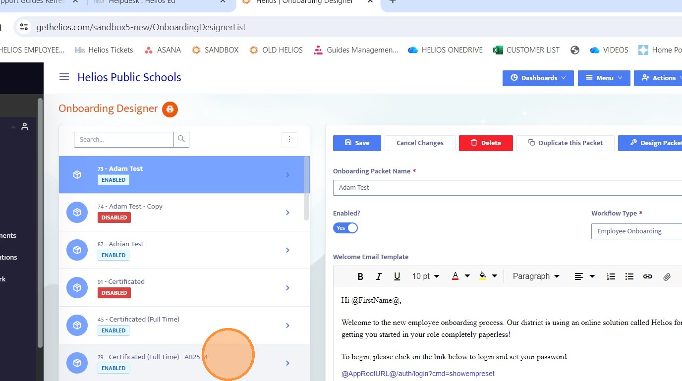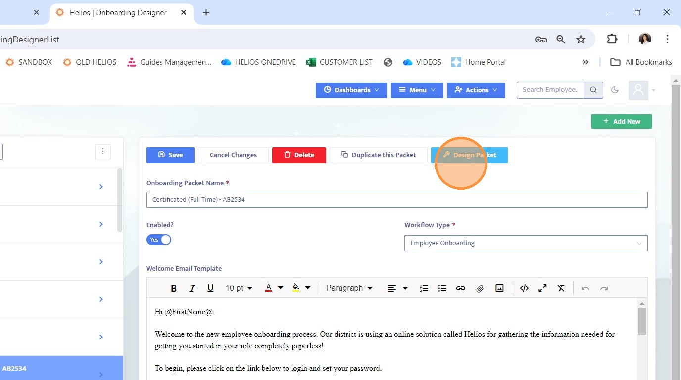 2. Select the onboarding packet you want to edit, either one that already includes external forms or one you want to add them to.