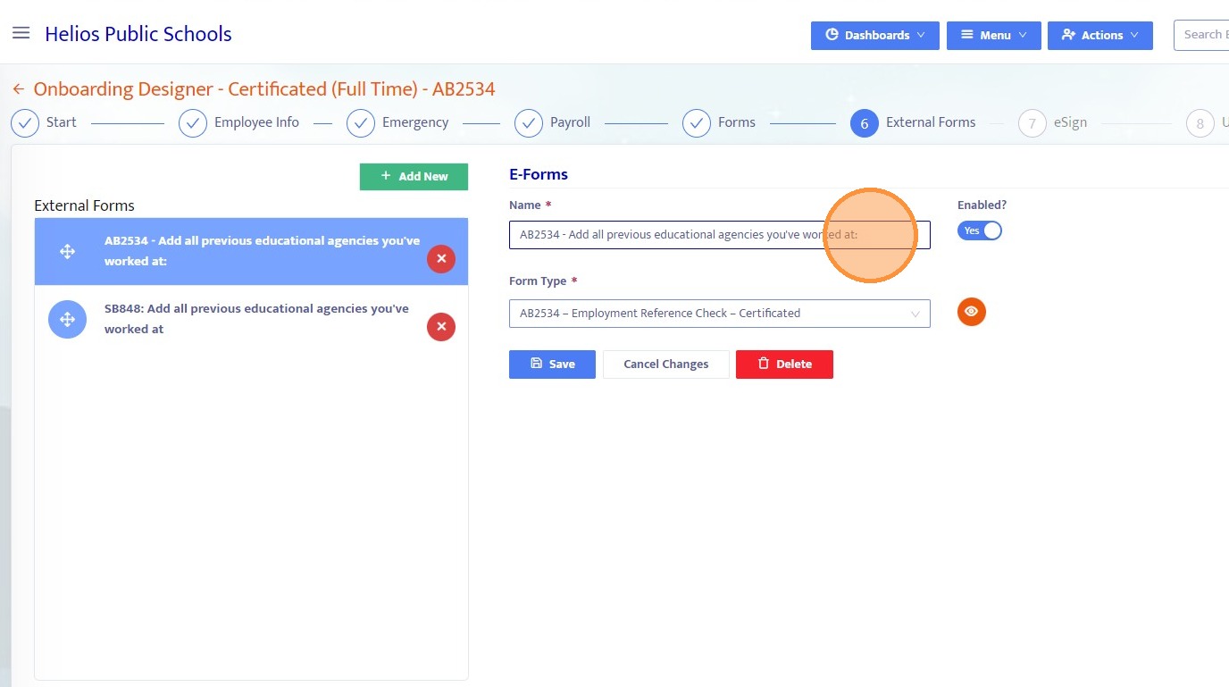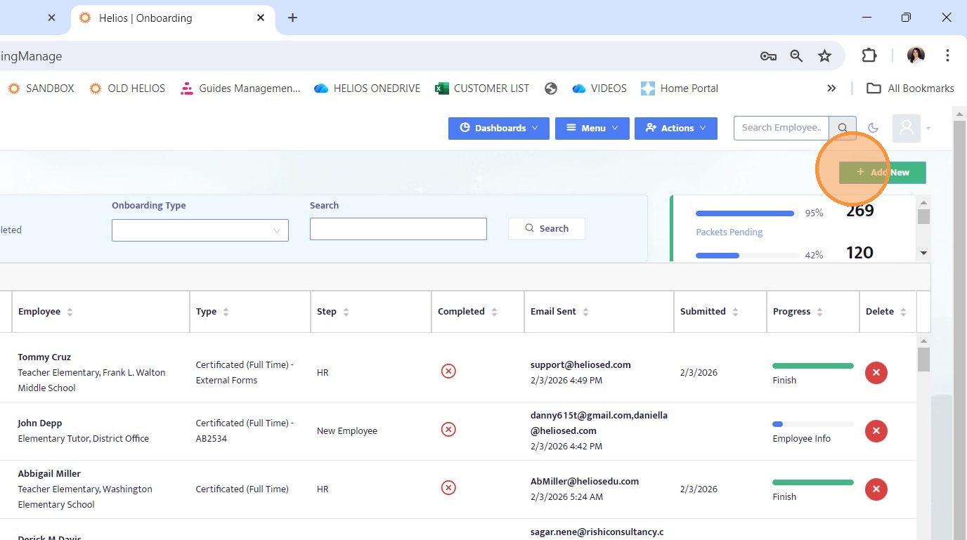 13. Click Add New to initiate an onboarding packet that includes external forms.