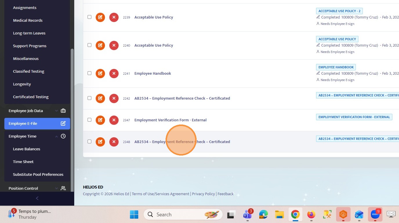 34. Navigate to the employee’s e-file.