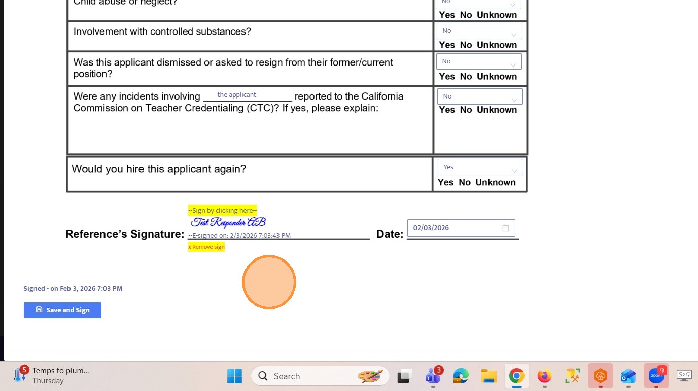 38. Open the form to review the external recipient’s responses. Note that this form is not visible in the employee portal to ensure responses remain private and accessible only to authorized administrators.