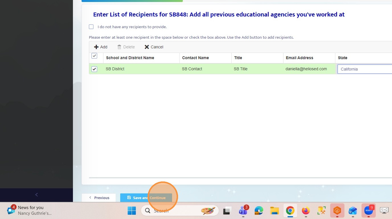 19. View an example of a completed recipient entry with all required information filled in.